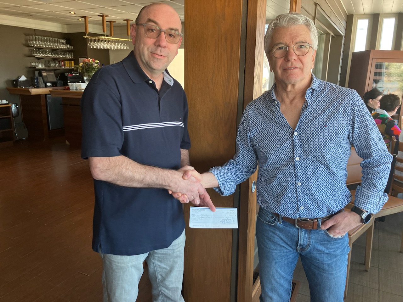 2 opérateurs du complexe Jonquière ont rencontré M. Serge Lalancette, président et M. Gilles Tremblay, directeur général afin de remettre un chèque au montant de 3 460 $ à l’ADHIS.
